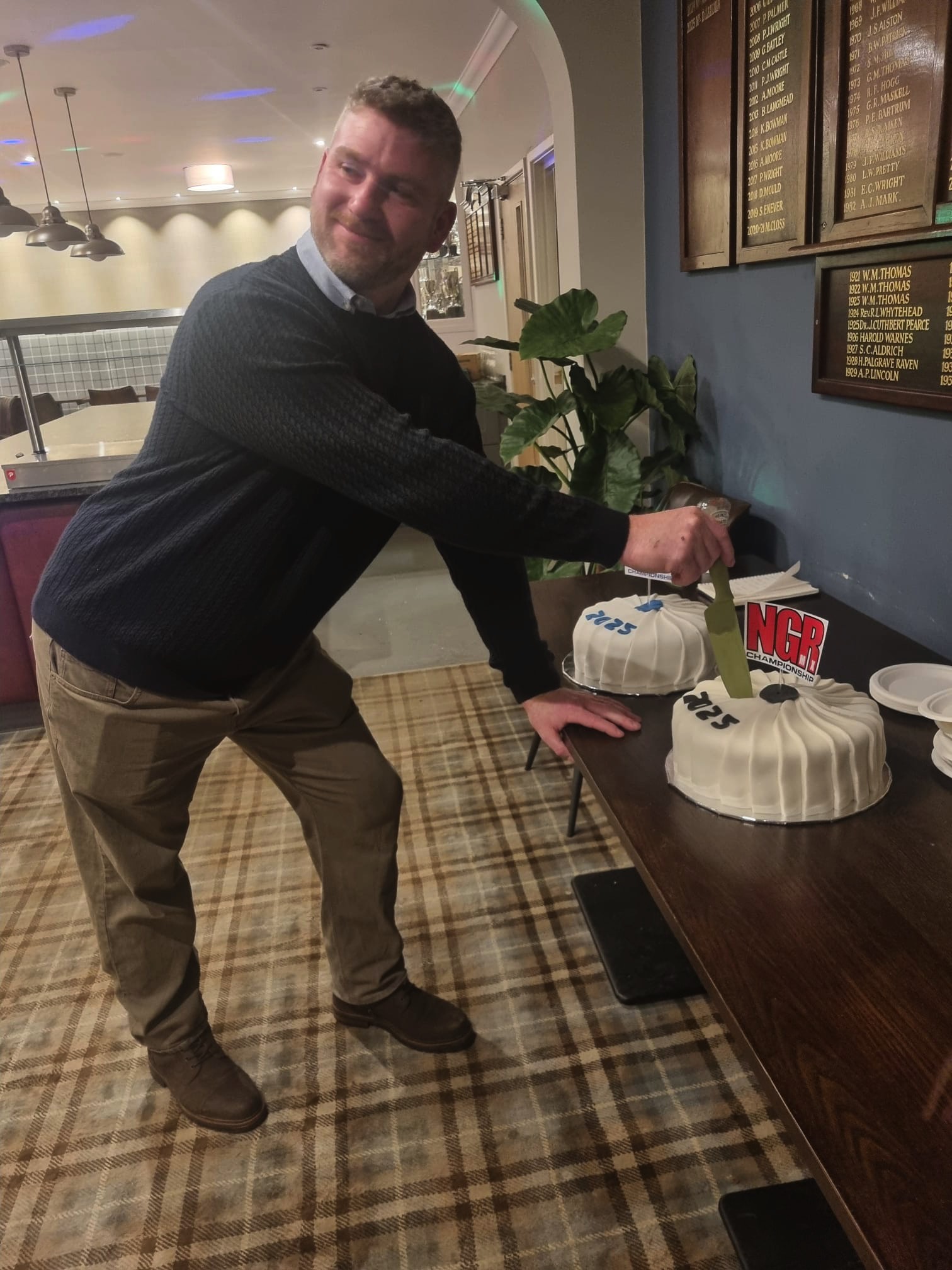 NGR Champion, Aaron Hopkins, demonstrates that the first cut is the deepest